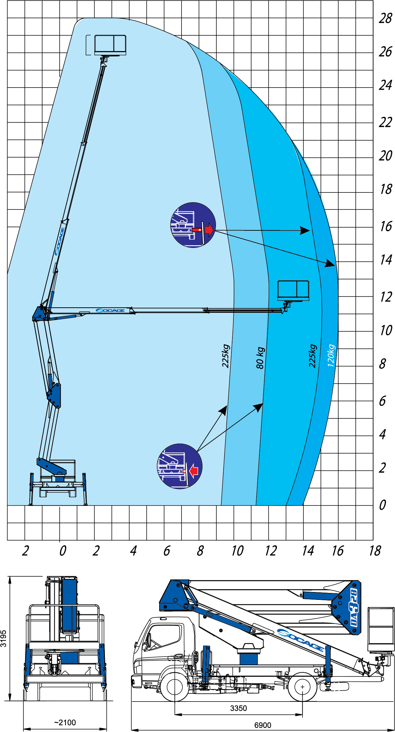It is also characterized by extremely compact dimensions during operation, which is similar to aerial work platforms from this same series installed on 3.5-ton vehicles.