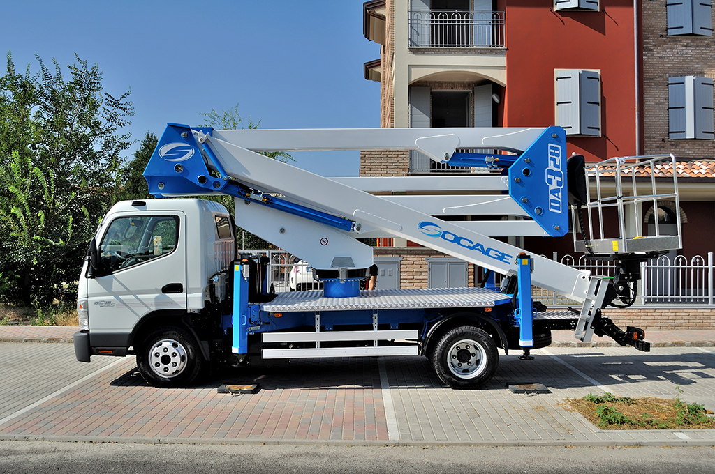 The model Socage DA328 forSte is an aerial work platform with a double articulated aerial platform, installed on vehicles from 5.6 tonnes.