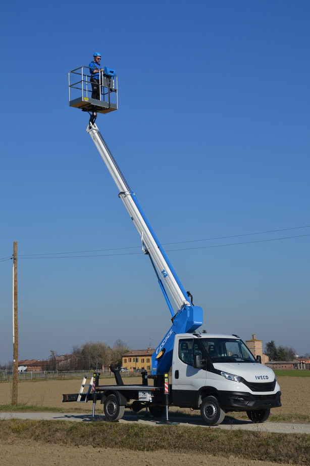 The SPEED automatic stabilization allows stabilization from the basket and guarantees safe and easy stabilization with greater capacity to overcome slopes without exceeding the vehicle dimensions. It is also fitted with automatic closing, even from the basket.