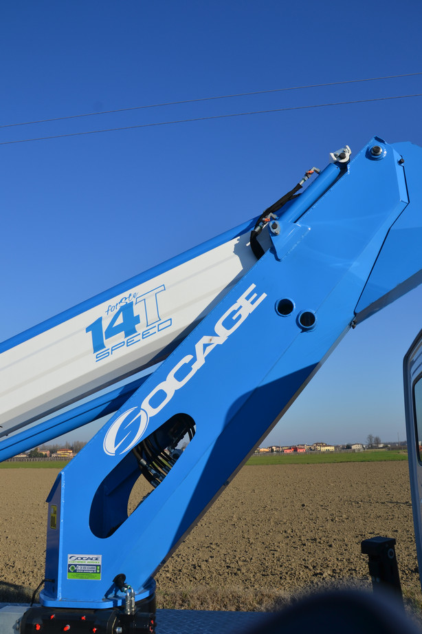 SOCAGE forSte 14T SPEED is a telescopic boom lift platform, with a lateral reach of 9m, reaches a working height of 14.10m with a large load capacity of 230 kg in the basket.