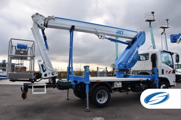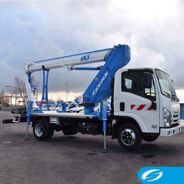 SOCAGE forSte 20TJ SPEED is a boom lift truck, with high performance and automatic stabilization as standard. It reaches a working height of 19.70m and a horizontal reach of 12m, in addition, has a large load capacity of 230 kg (2 operators + material).