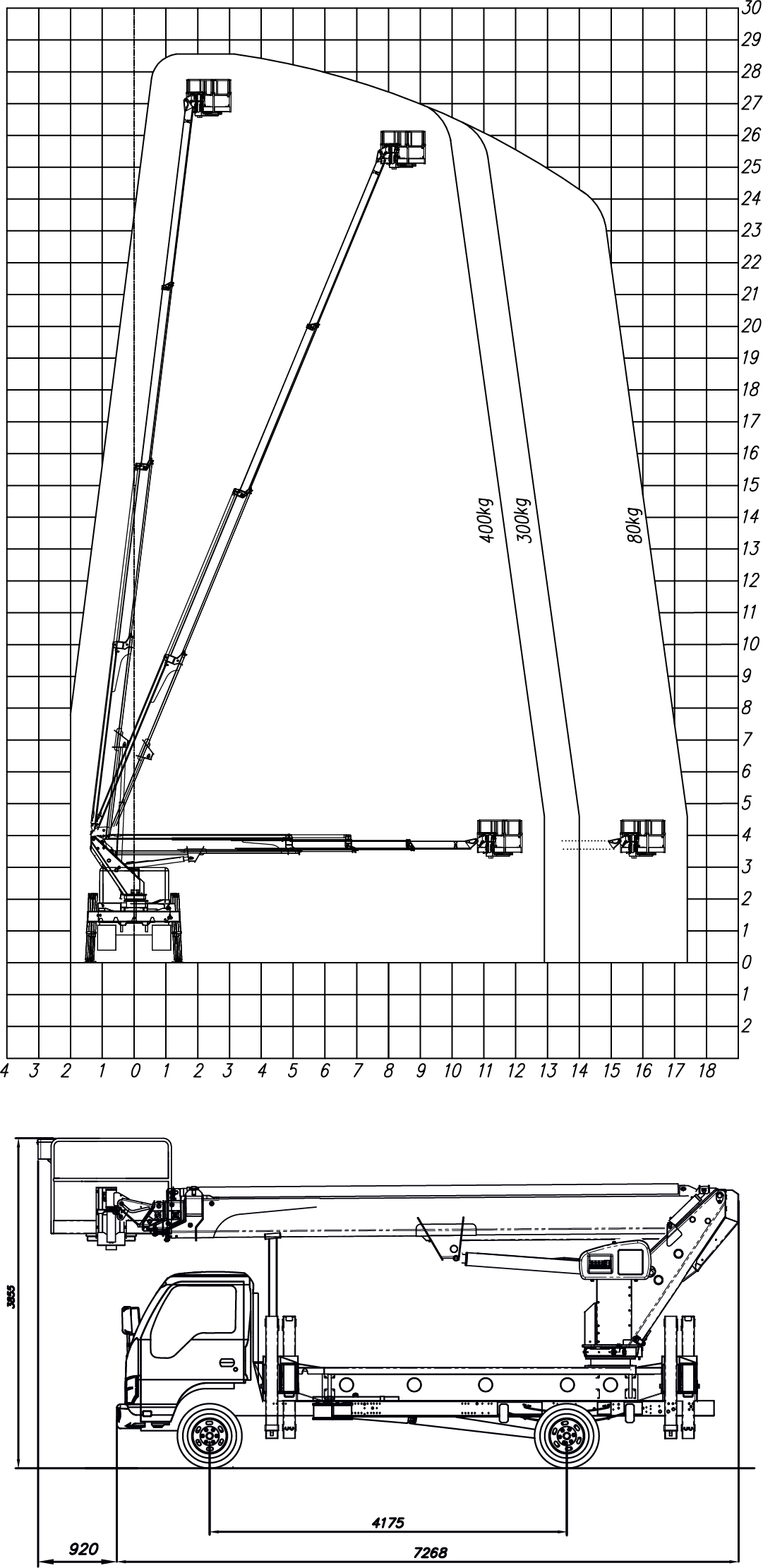 | Outreach, max. | 17,30 m |