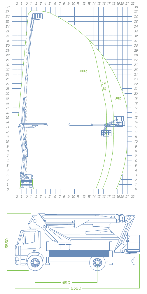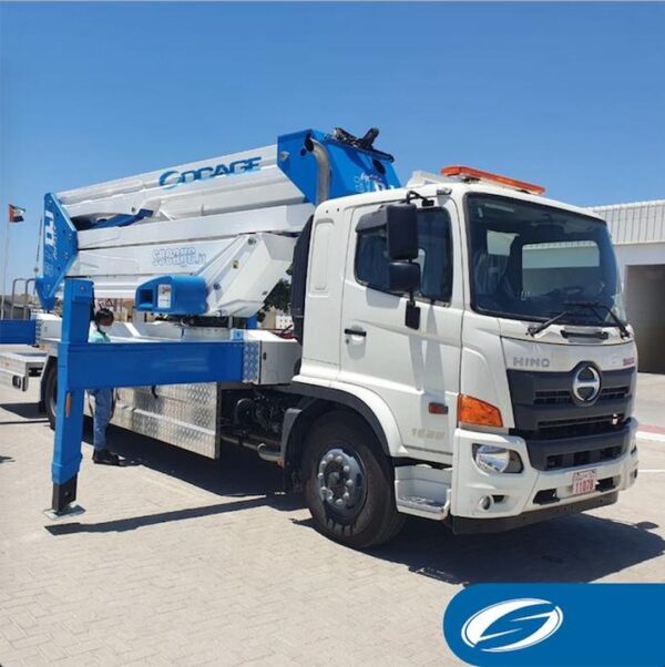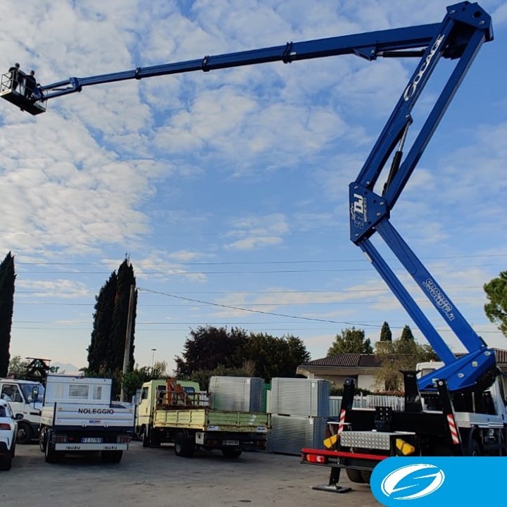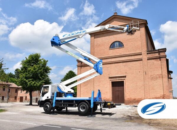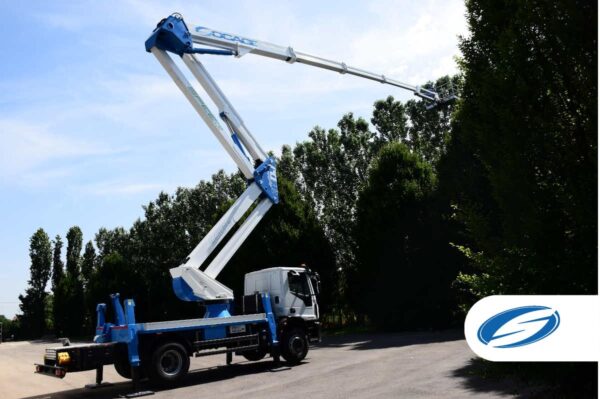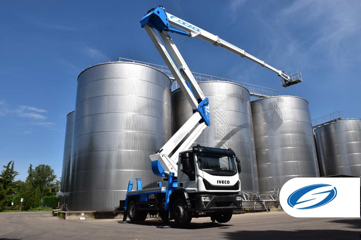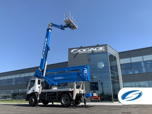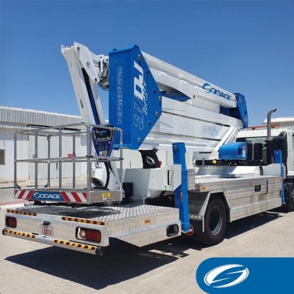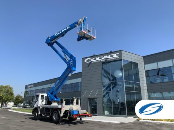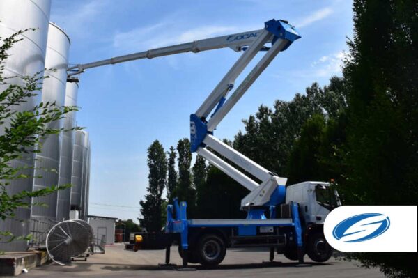 SOCAGE forSte 37DJ Speed is a truck-mounted boom lift with hydraulic JIB, that can be mounted on 2-axle trucks from 18T. It reaches a working height of 37,30m and a horizontal reach of 21m, in addition, has a large load capacity of 280 kg (3 operators + material).