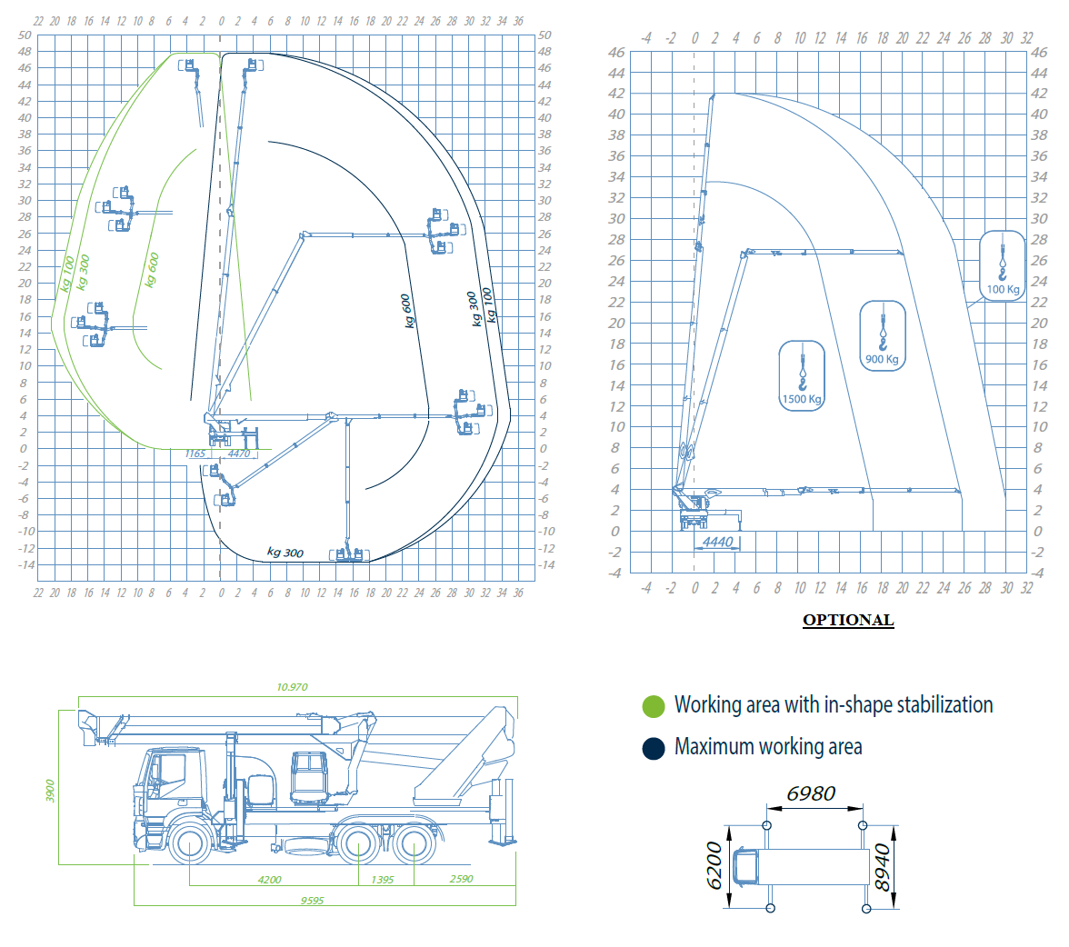 Can be equipped with a 900/1500 kg capacity boom-mounted hydraulic winch, which can be used as a crane after removing the aluminum platform.