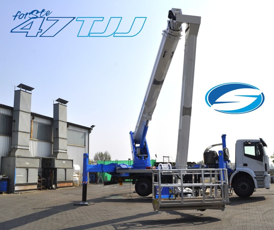 SOCAGE forSte 47TJJ is a double JIB / jib telescopic aerial platform that can be installed on trucks with p.t.t. minimum from 18 tons. It reaches a working height of 47m and a horizontal reach of 30m, in addition, has a large load capacity of 600 kg (6 operators + material).