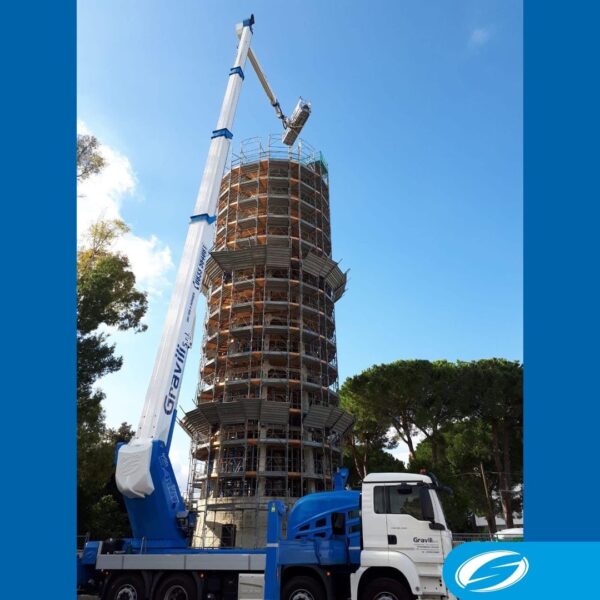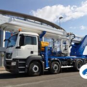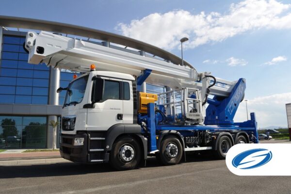 SOCAGE 54TJJ is a telescopic aerial platform with jib that can be installed on trucks with p.t.t. minimum from 26 tons. It reaches a working height of 54m and a horizontal reach of 40m on 32-ton trucks, in addition, has a large load capacity of 600 kg (6 operators + material).