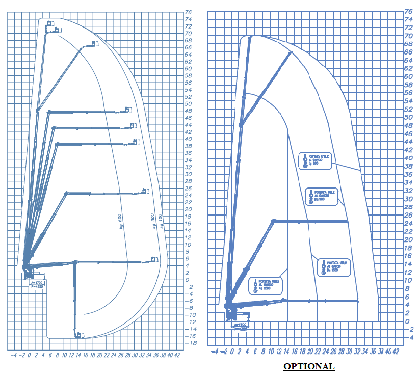 Equipped as standard with a multi-zone stabilization system that allows the operator to choose between different options depending on the available space for the truck; In addition, the rear stabilizing crossmembers have 2 hydraulic extensions that increase the stabilization area and, therefore, the maximum performance of the equipment.