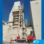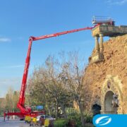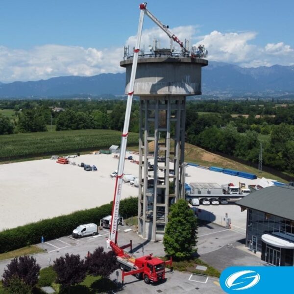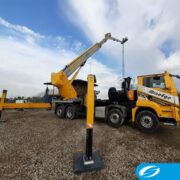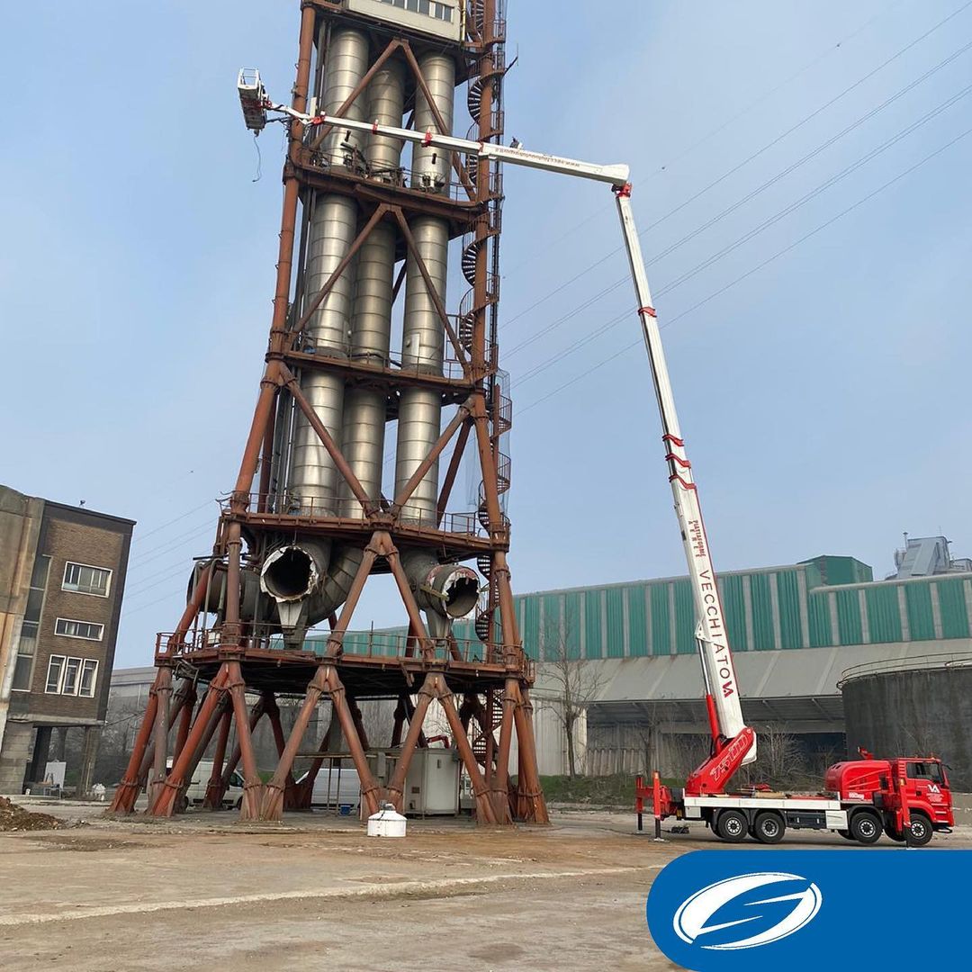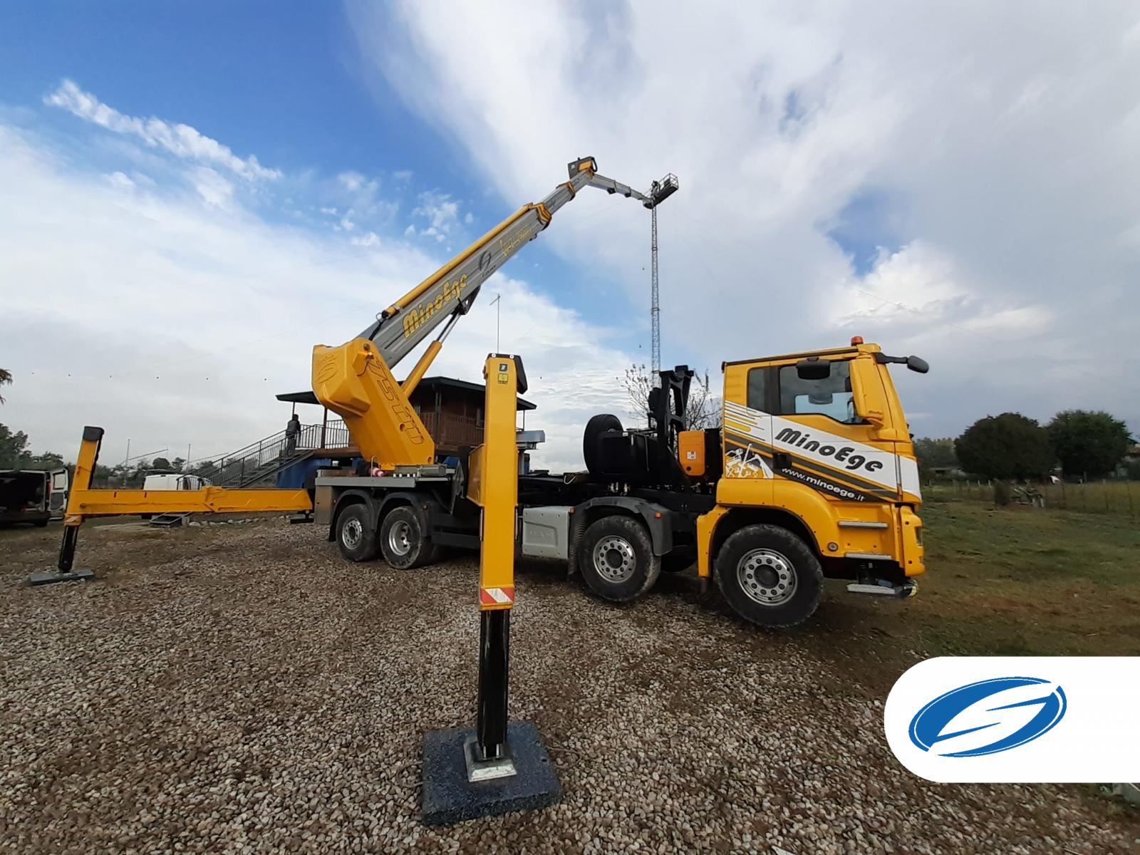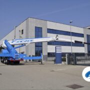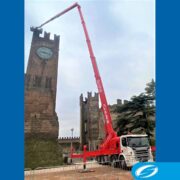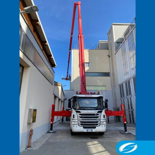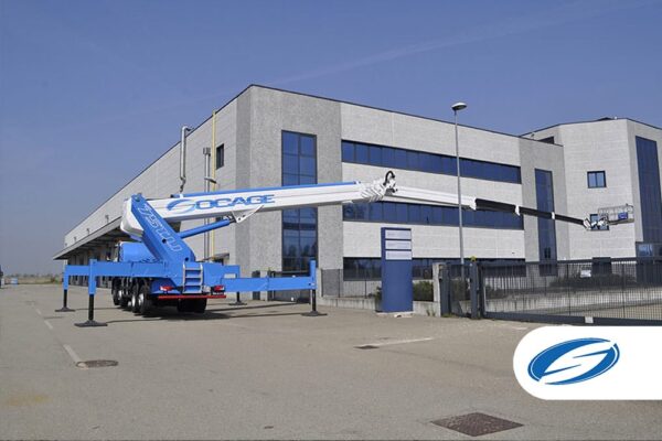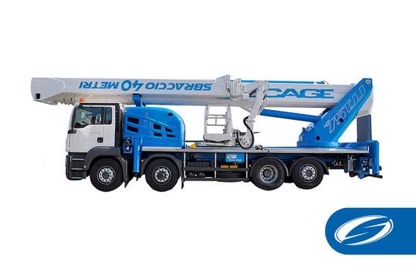 SOCAGE 75TJJ is an aerial work platform with a jib that can be installed on trucks with p.t.t. minimum from 32 tons. This model is provided with a secondary boom that allows the equipment to perform maneuvers that would not be possible with a basket with only one JIB. It reaches a working height of 75m and a horizontal reach of 40m, in addition, has a large load capacity of 600 kg (6 operators + material).