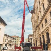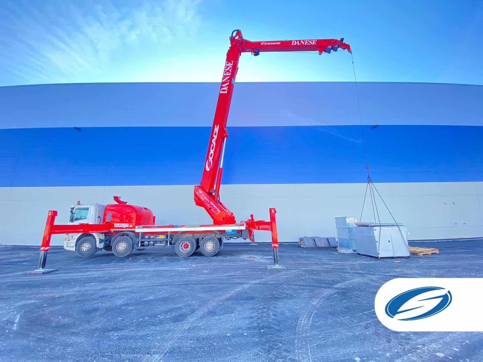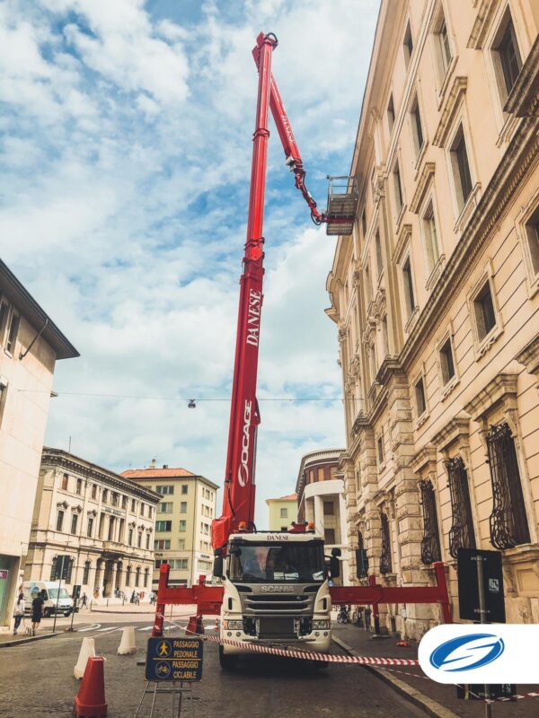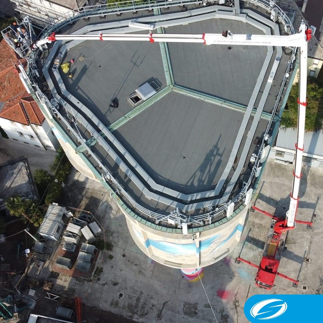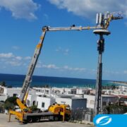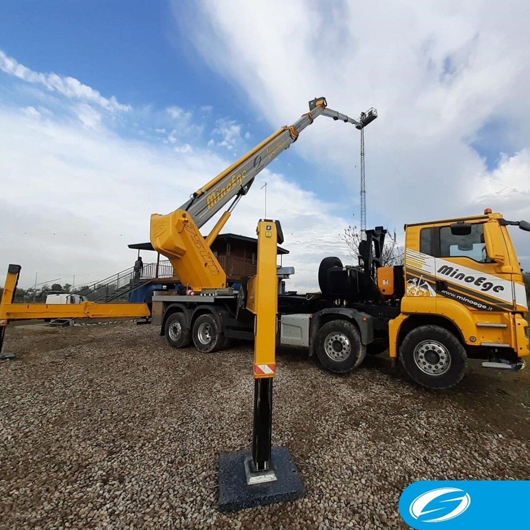 SOCAGE 75TJJ is an aerial work platform with a jib that can be installed on trucks with p.t.t. minimum from 32 tons. This model is provided with a secondary boom that allows the equipment to perform maneuvers that would not be possible with a basket with only one JIB. It reaches a working height of 75m and a horizontal reach of 40m, in addition, has a large load capacity of 600 kg (6 operators + material).
