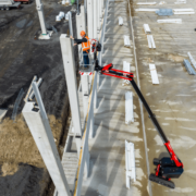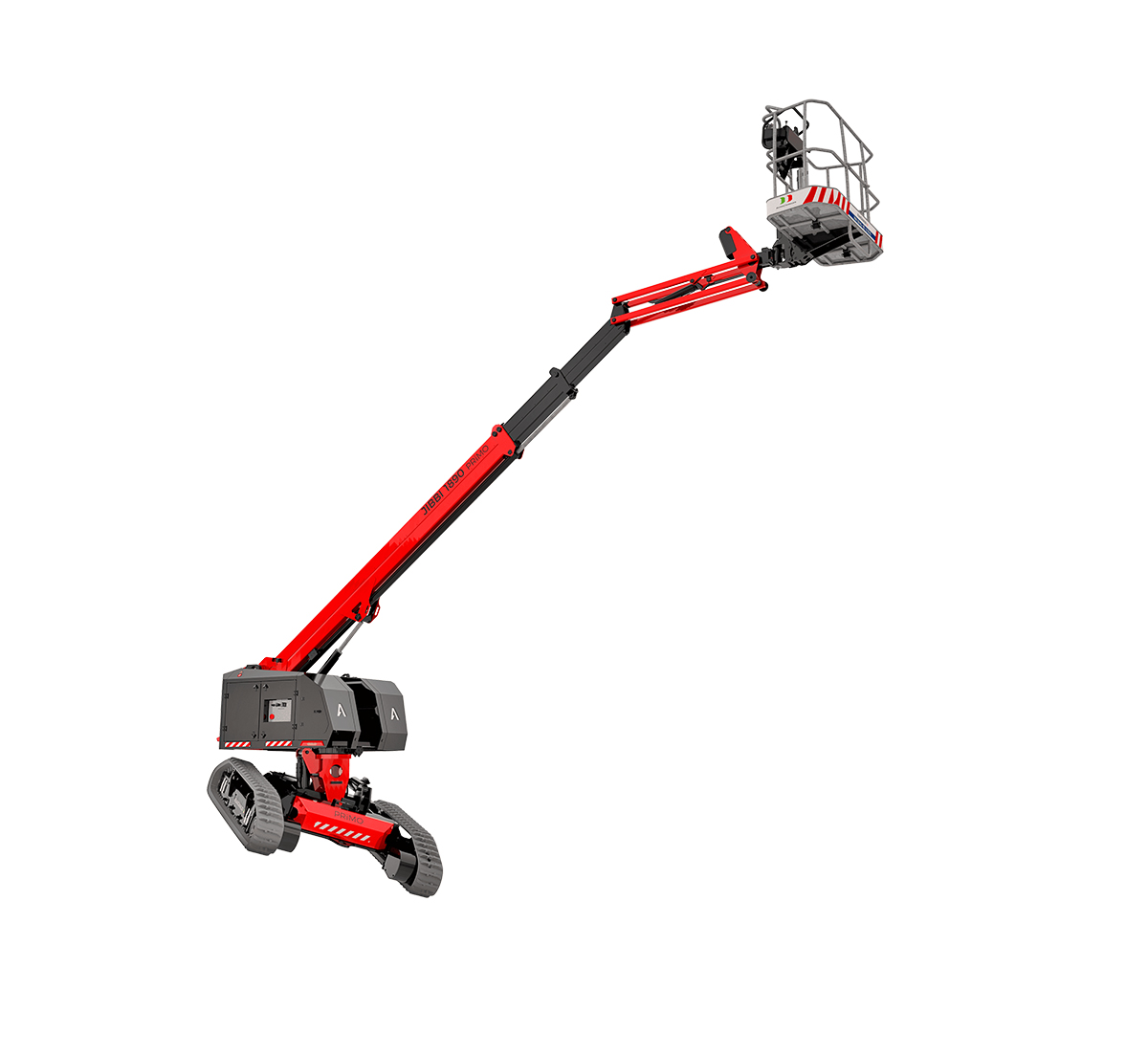 • Ultrasonic Anti-collision System sensors safeguard the aerial and travel operations by monitoring the area in front and behind the tracks, on the tail swing, and above and below the basket, preventing collisions with obstacles and offering pothole and drop-off protection.