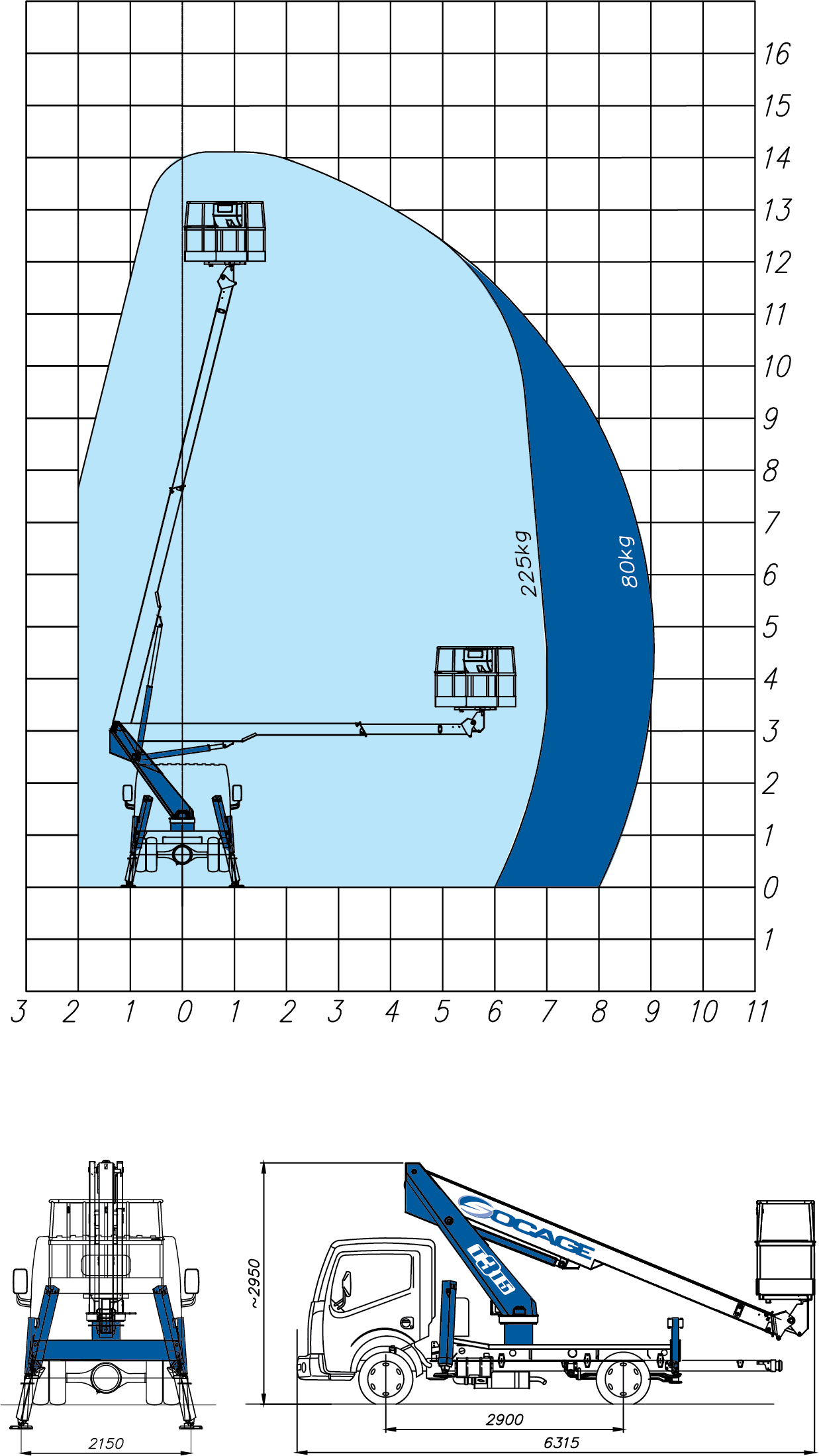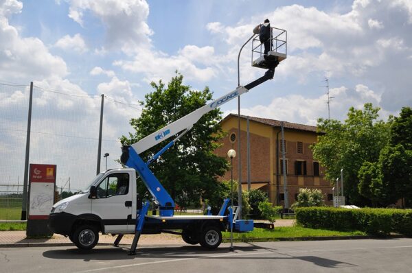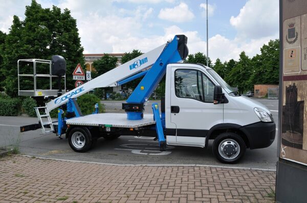 The SOCAGE T315 forSte is a telescopic aerial platform that can be installed on several 3.5-ton vehicle models, including Nissan Cabstar, Renault Maxity, and Iveco Daily. Capable of reaching a working height of 14.9 m, and with a horizontal reach of 9.1 m, it has a load capacity of 225 kgs (2 operators + equipment), without limitation throughout the work area. The T315 stabilization system reduces the width for vehicle stabilization. The rotation of the superstructure is continuous; this feature increases the productivity of the platform avoiding time for repositioning. The rotation of the basket in aluminum (dimensions 140x70x110 cm) and 90º + 90º.