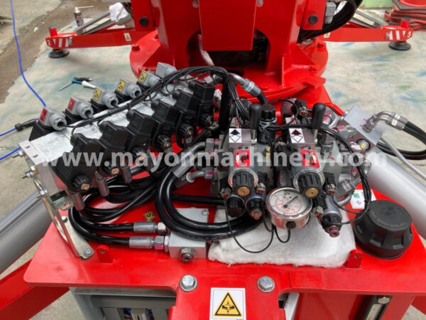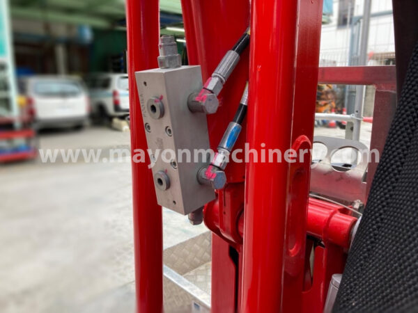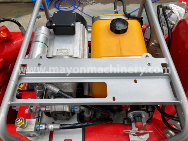 - Hydraulic tank, emergency control, connecting cables, and hoses are mounted protected
